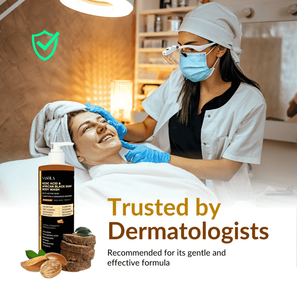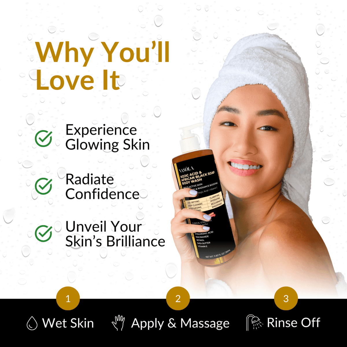 Embrace the Nasola Kojic Acid & African Black Soap Body Wash for an elevated skincare journey that combines the best of nature and science, where every wash is a step closer to your skin’s ideal radiance and beauty.