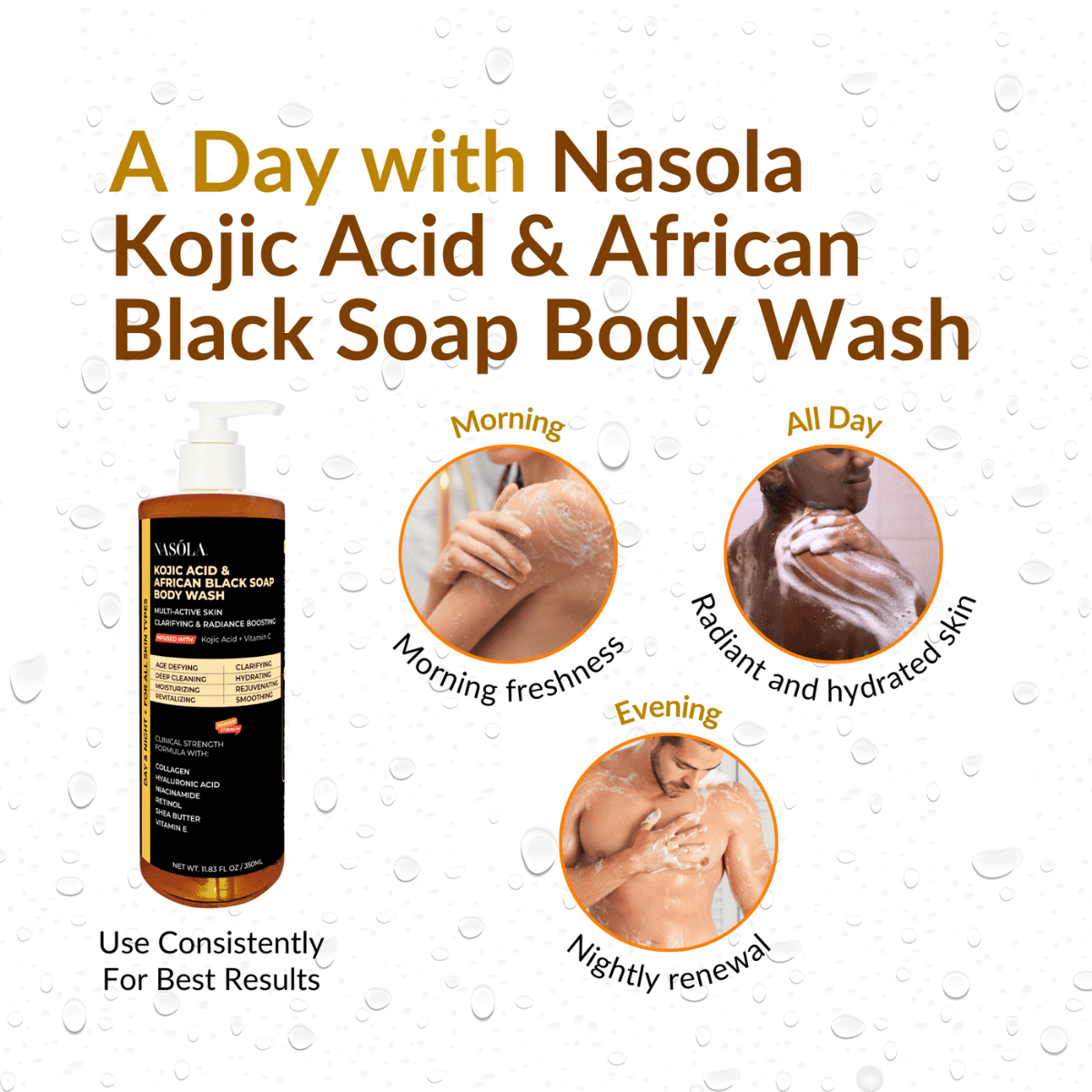 Embark on a transformative skincare journey with Nasola Kojic Acid & African Black Soap Body Wash.