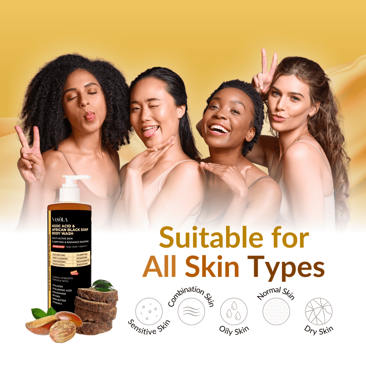 Embark on a transformative skincare journey with Nasola Kojic Acid & African Black Soap Body Wash.