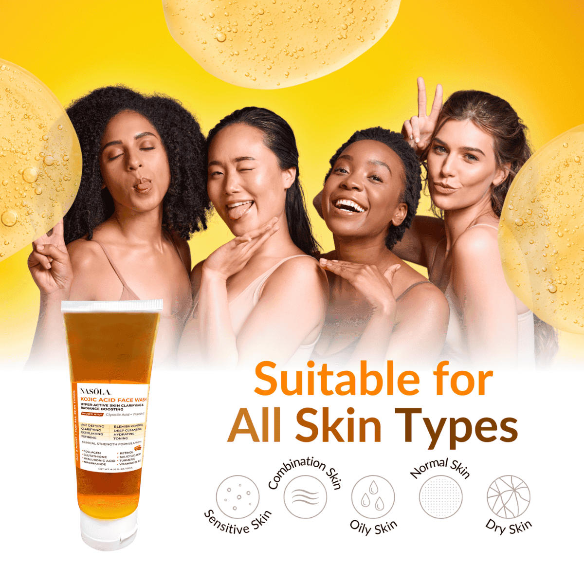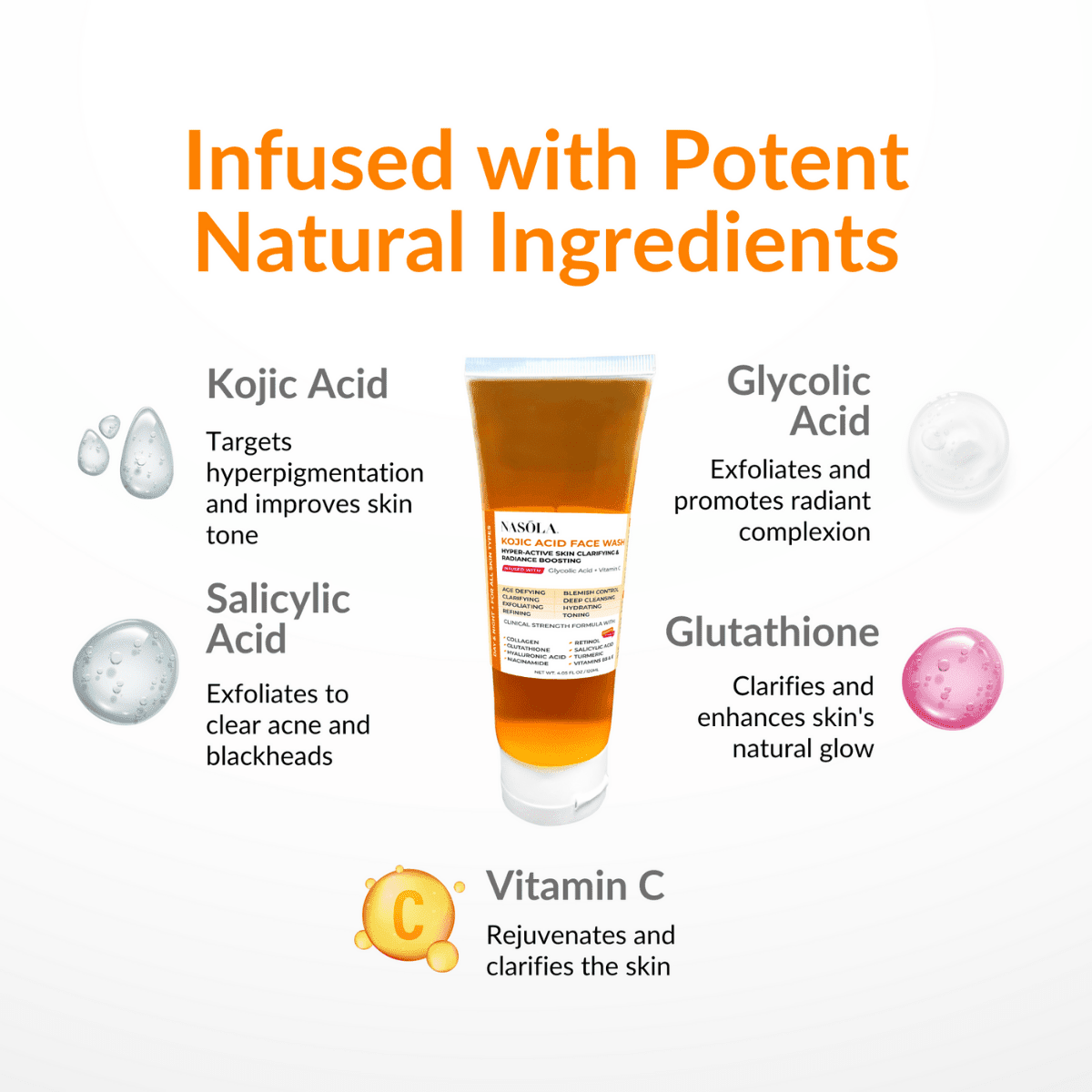 Experience the truly transformative power of Nasola Kojic Acid Face Wash today!