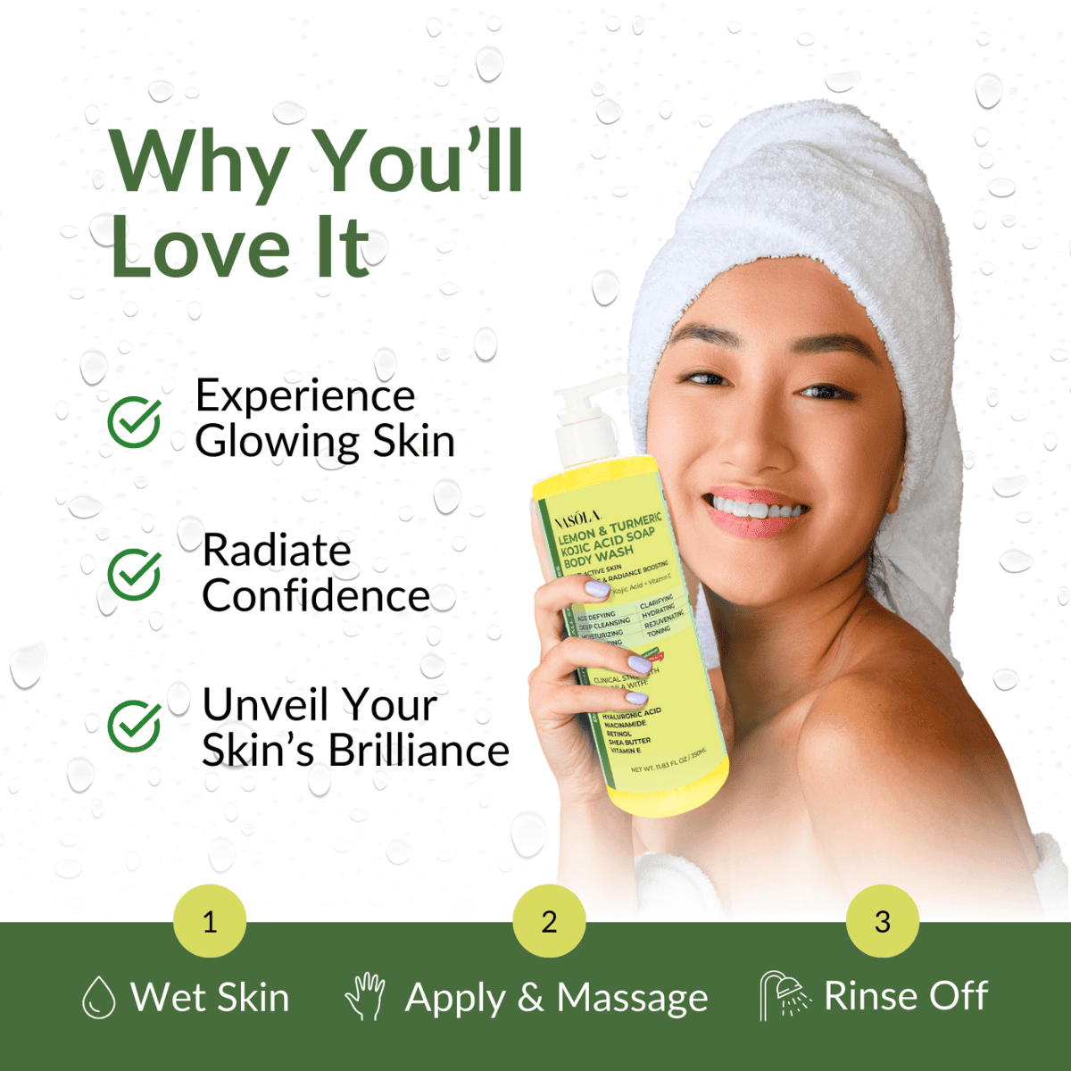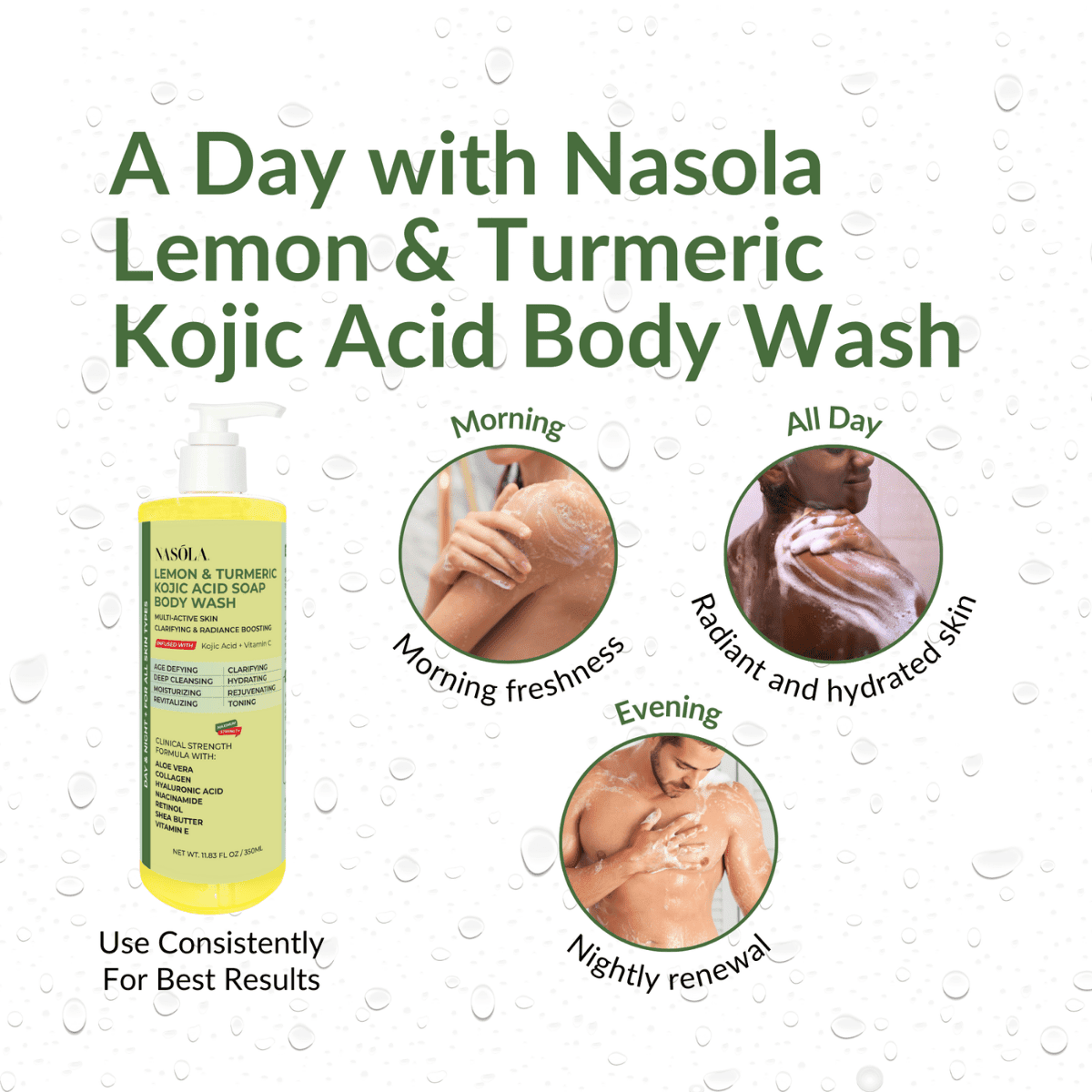Designed to cater to the most discerning needs, our body wash promises unparalleled age-defying, blemish-control, deep cleansing, hydrating, moisturizing, rejuvenating, revitalizing, and toning benefits.